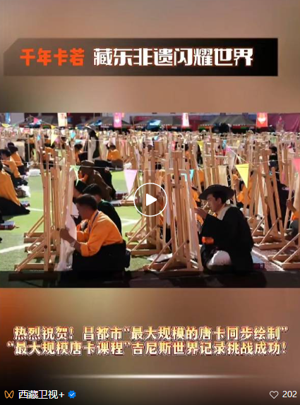 9月28日,由昌都市委、市政府主辦,卡若區(qū)委、區(qū)政府承辦的“最大規(guī)模的唐卡同步繪制”“最大規(guī)模唐卡課程”吉尼斯世界紀(jì)錄挑戰(zhàn)活動(dòng)在津昌體育文化中心成功舉辦!來自全市各地的上千名唐卡畫師匯聚一堂,聆聽大師點(diǎn)撥、繪制唐卡作品,成功打破原世界紀(jì)錄,讓昌都成為“最大規(guī)模的唐卡同步繪制”“最大規(guī)模唐卡課程”吉尼斯世界紀(jì)錄保持者!