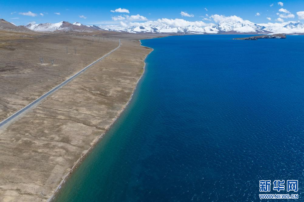 10月9日拍攝的普莫雍錯(無人機照片)。新華網(wǎng) 旦增努布 攝