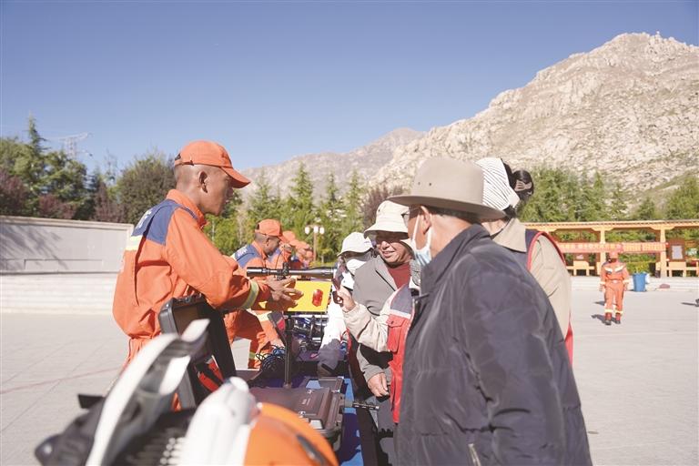 在資料發(fā)放環(huán)節(jié),大隊(duì)宣傳員向過往群眾遞發(fā)《森林防火條例》摘要手冊(cè)及防災(zāi)減災(zāi)科普折頁等宣傳資料200余份,確保防災(zāi)政策、防火常識(shí)“廣覆蓋、無遺漏”;案例講解環(huán)節(jié),宣傳人員結(jié)合周邊近年防災(zāi)減災(zāi)典型案例與森林火災(zāi)真實(shí)事件,用藏漢雙語解讀違規(guī)用火、災(zāi)害應(yīng)對(duì)不當(dāng)?shù)膰?yán)重后果,明確違反相關(guān)規(guī)定的法律責(zé)任,讓群眾直觀感受到防災(zāi)減災(zāi)與防火的緊迫性;裝備展示區(qū),專業(yè)救援車輛、滅火器材及救援裝備逐一陳列,大隊(duì)宣傳員細(xì)致講解各類裝備的用途與操作原理,既充分展現(xiàn)應(yīng)急救援實(shí)力,也有效加深群眾對(duì)防災(zāi)減災(zāi)、防火救援工作的認(rèn)知;有獎(jiǎng)問答與答疑環(huán)節(jié),通過趣味互動(dòng)充分激發(fā)群眾參與熱情,針對(duì)家庭用火安全、日常防災(zāi)避險(xiǎn)、林區(qū)作業(yè)防火等常見疑問,宣傳員耐心解答、細(xì)致指導(dǎo),做到“有問必答、解惑到位”。