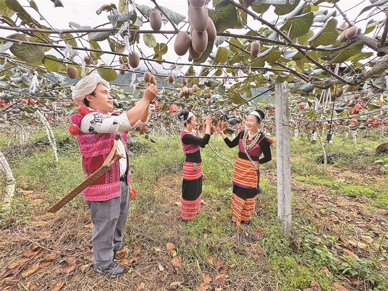 不僅如此,企業(yè)還定期請來農業(yè)專家培訓,向村民傳授標準化種植技術。走進獼猴桃種植基地,正在疏果的村民依青向記者展示新學的技術:“每株保留2到3個果最好,這樣成熟后的果子果形大、甜度高,價格自然也高?!彼胰ツ旮貙W種植,8畝獼猴桃收入5萬多元。以前只會種玉米的她,現(xiàn)在已經成了村里的技術能手。