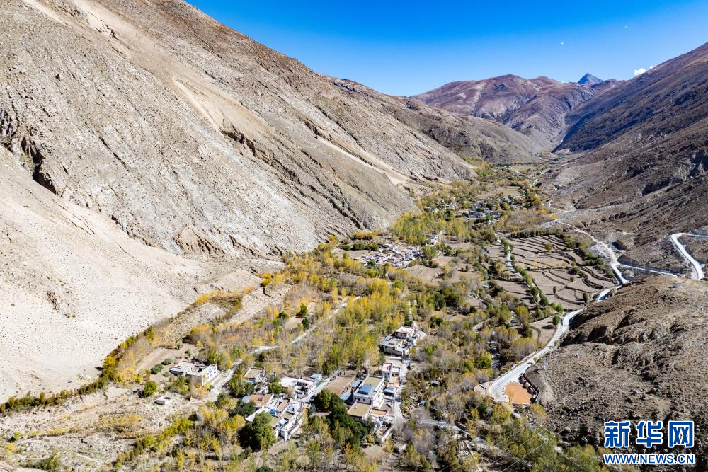 10月17日拍攝的西藏拉薩市尼木縣吞巴鎮(zhèn)吞達(dá)村(無人機(jī)照片)。新華網(wǎng) 旦增努布 攝