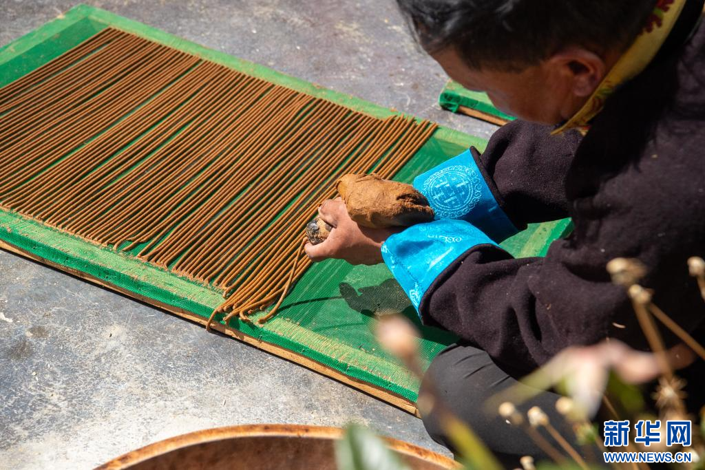 10月17日,西藏拉薩市尼木縣吞巴鎮(zhèn)吞達(dá)村縣級非遺傳承人普布次仁在制作藏香。新華網(wǎng) 旦增努布 攝