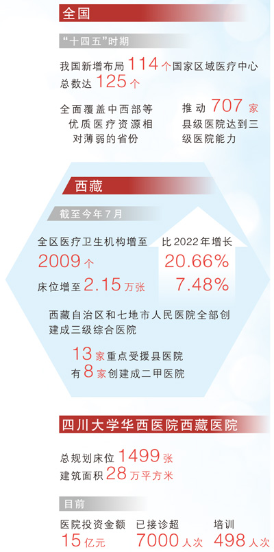 “近年來西藏醫(yī)療條件有了明顯提高,但仍有大量疑難病、危重癥患者需要向外轉(zhuǎn)診?!彼拇ù髮W(xué)華西醫(yī)院院長羅鳳鳴說,建設(shè)國家區(qū)域醫(yī)療中心,就是為了進一步補短板,方便更多群眾在家門口就醫(yī)。