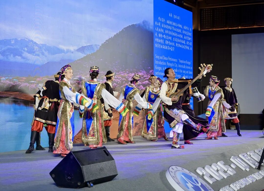 開(kāi)幕式在《吉祥工布》的旋律中拉開(kāi)了序幕。舞者們身著色彩斑斕的工布服飾,仿佛從雪山深處走來(lái)的精靈,正以熱情的舞步迎接八方賓客,每一個(gè)轉(zhuǎn)身、跳躍都充滿了對(duì)遠(yuǎn)道而來(lái)客人的真摯歡迎。