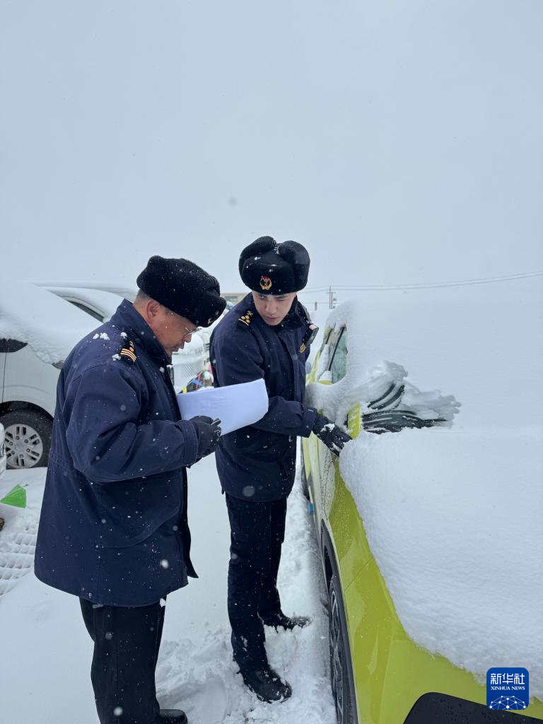 10月28日,日喀則海關(guān)關(guān)員在里孜口岸查驗出口新能源汽車。(拉薩海關(guān)供圖)