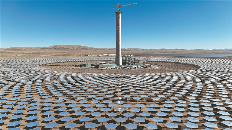 圖為那曲市安多縣帕那鎮(zhèn)土若村的“100MW光熱+800MW光伏”一體化項(xiàng)目建設(shè)現(xiàn)場(chǎng)。記者 趙書(shū)彬 攝