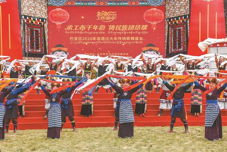 11月21日(工布新年大年初一),在林芝市巴宜區(qū)依舍莊園,“承工布千年韻 鑄民族團(tuán)結(jié)情”——巴宜區(qū)2026年“非遺過大年”傳統(tǒng)歌舞盛會(huì)精彩上演。整場演出圍繞工布年味、非遺傳承、民族團(tuán)結(jié)三大主題,分設(shè)“歲月如歌·福滿工布”“匠心歡歌·情系家園”“團(tuán)結(jié)歡歌·共譜華章”三大篇章,20余個(gè)節(jié)目涵蓋男女聲獨(dú)唱、民俗舞蹈、器樂演奏等多種表演形式,將高原獨(dú)特民俗風(fēng)情與深厚文化底蘊(yùn)相融合,為市民游客帶來了一場具有民族特色的視聽盛宴。