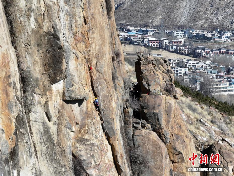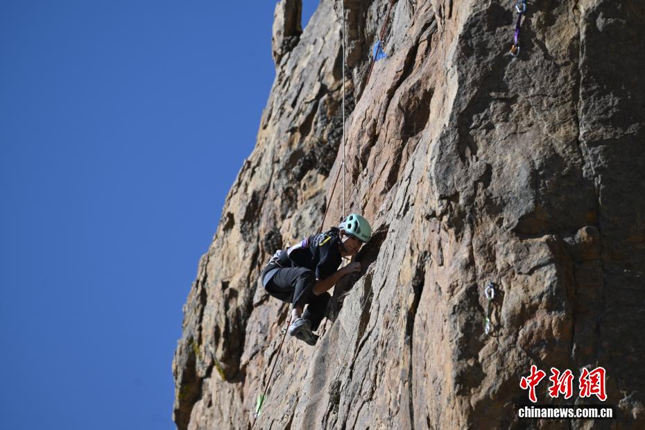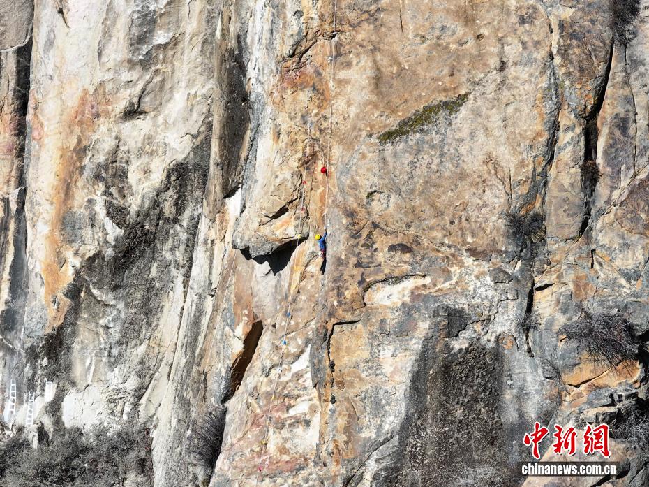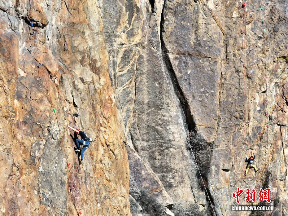 11月29日,2025西藏自治區(qū)攀巖自然巖壁公開賽在拉薩市奪底溝吉倉自然巖壁場(chǎng)地開賽。來自中國全國的70名運(yùn)動(dòng)員、高校學(xué)生及社會(huì)攀巖愛好者參賽。中新社記者 貢嘎來松 攝