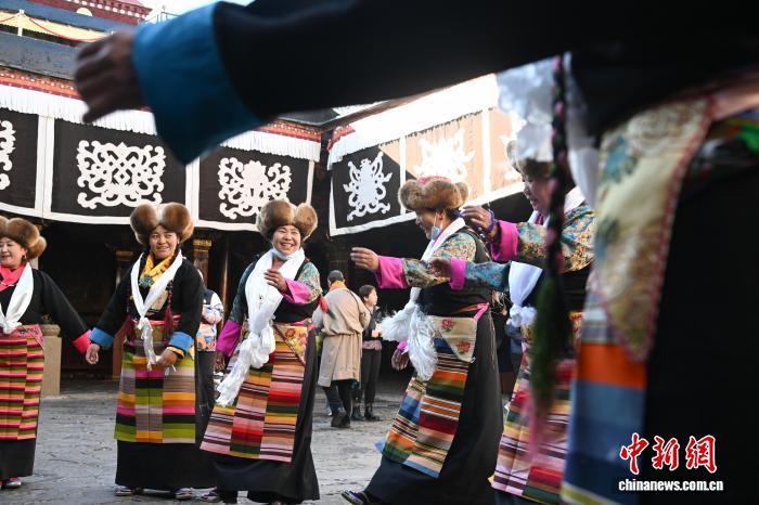 隨著藏歷十月十五白拉姆節(jié)(又稱“仙女節(jié)”)臨近,11月28日,西藏拉薩的婦女們?cè)诖笳阉绿饌鹘y(tǒng)舞蹈,迎接“仙女節(jié)”到來(lái)。“仙女節(jié)”即吉祥天母節(jié),藏語(yǔ)稱“白來(lái)日追”。相傳藏傳佛教最高護(hù)法神之一班丹拉姆的女兒白拉姆,不顧母親的反對(duì)與赤尊贊私定終身,班丹拉姆一怒之下將赤尊贊趕到拉薩河南岸,規(guī)定二人僅每年的藏歷十月十五日相見。中新社記者 貢嘎來(lái)松 攝