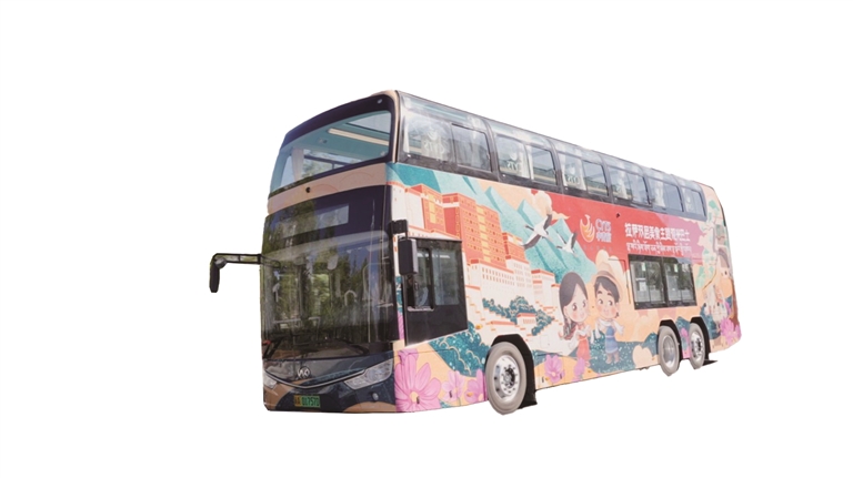 拉薩雙層美食主題觀光巴士車身以中國紅為主色調(diào),點綴著黑頸鶴、拉薩兒童笑臉及布達拉宮等標志性景觀圖案,每一處細節(jié)都散發(fā)著濃郁的地域文化氣息。