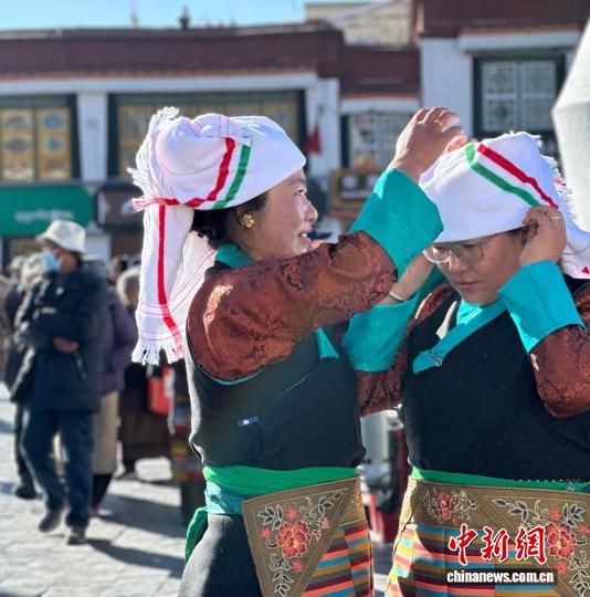 大昭寺廣場,陽光灑在石板地上,發(fā)出細(xì)碎而溫潤的光。德吉卓嘎與幾位身著傳統(tǒng)藏裝的女子剛剛結(jié)束朝拜,正在互相拍照留念。“每年這天我們幾個朋友都會聚聚,聊聊家里的事,也說說各自新年的打算?!钡录扛滦χf。