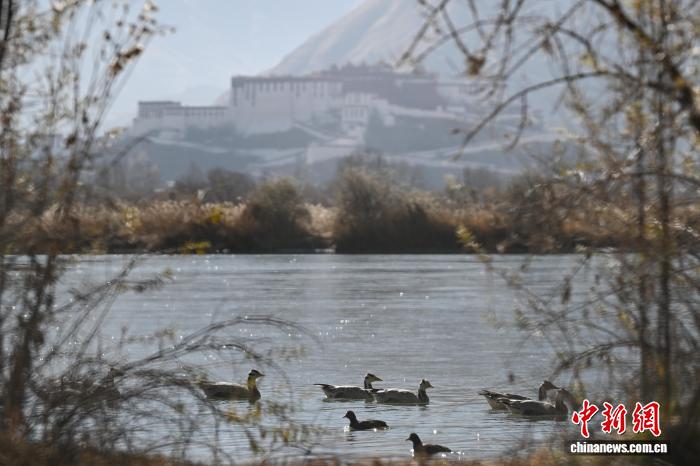 2025年12月9日,世界海拔最高的城市內(nèi)陸天然濕地——拉薩拉魯濕地國家級自然保護(hù)區(qū)盡顯冬日盛景。這片總面積12.2平方公里的“拉薩之肺”,初冬時節(jié)蘆葦泛金,赤麻鴨、斑頭雁等候鳥在此嬉戲覓食。遠(yuǎn)處布達(dá)拉宮巍然矗立,周邊雪山皚皚,自然生態(tài)與人文景觀交相輝映,構(gòu)成一幅兼具壯闊與靈動的高原畫卷,彰顯著拉薩人與自然和諧共生的生態(tài)之美。圖為拉薩市民在拉魯濕地晨練。中新社記者 貢嘎來松 攝