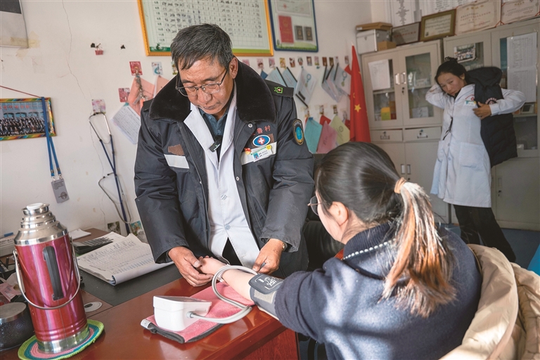 他早已習(xí)慣讓手機(jī)保持開機(jī)狀態(tài),清晨急診、深夜出診皆是尋常?!按迕裢懈队谖遥M能令其久候?!边@樸實(shí)話語常伴其行。面對行動(dòng)不便的老人和幼兒,他定期叩門量血壓、做檢查,將健康守護(hù)送到家中。每次獲得表彰時(shí)他總是謙遜地說:“這是對鄉(xiāng)醫(yī)群體的肯定,我定不負(fù)這份托付?!?/p>