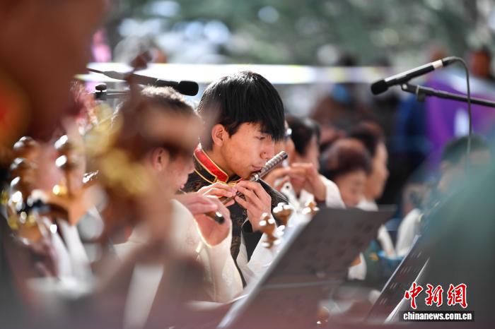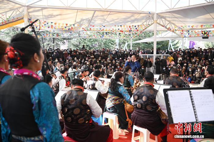 圖為群眾音樂會,民樂合奏《我的家鄉(xiāng)好》精彩上演。中新社記者 貢嘎來松 攝