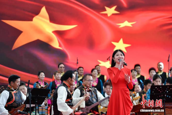 圖為群眾音樂會獨唱《祝福祖國》。中新社記者 貢嘎來松 攝