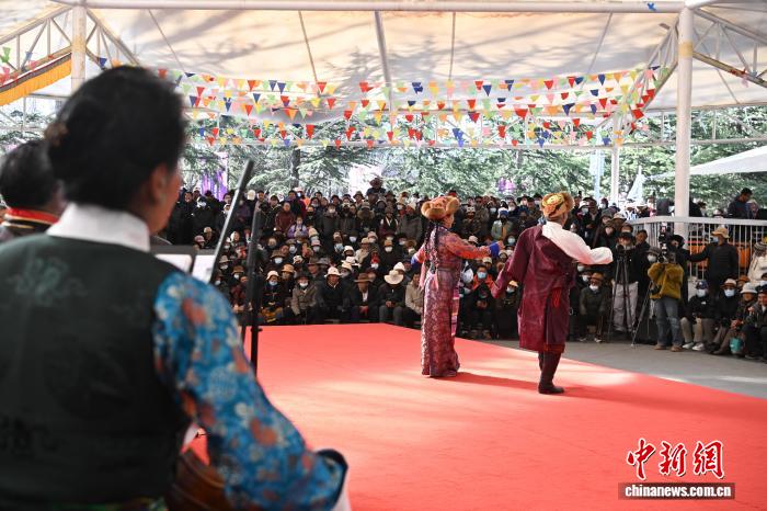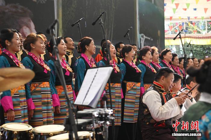 圖為群眾音樂會表演拉薩堆諧《強確拉》。中新社記者 貢嘎來松 攝