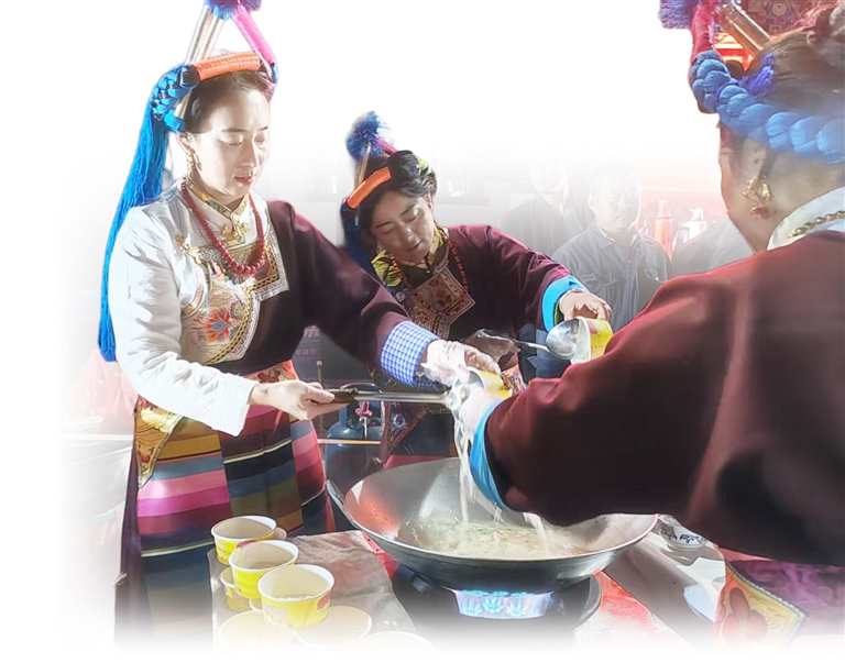 在芒康縣,像卓瑪拉姆這樣依托加加面發(fā)展致富的家庭還有很多。對(duì)于更多經(jīng)營(yíng)加加面的家庭而言,這碗面不僅讓他們?cè)鍪罩赂?,更讓他們?cè)趥鞒袀鹘y(tǒng)文化的過程中,找到了自身的價(jià)值。他們當(dāng)中,有返鄉(xiāng)創(chuàng)業(yè)的年輕人,有世代傳承的老手藝人,還有曾經(jīng)的貧困戶,憑借著一碗碗加加面過上了富足生活。對(duì)于這些家庭而言,加加面絕非一碗普通的面條,而是鹽井人民生活的生動(dòng)見證——它承載著厚重的文化底蘊(yùn),是旅游經(jīng)濟(jì)的堅(jiān)實(shí)支柱,更是他們走向富裕生活的“金鑰匙”。