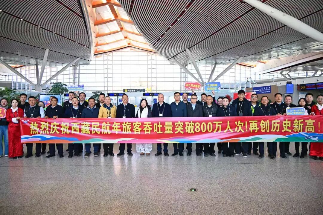 圖為在拉薩貢嘎國(guó)際機(jī)場(chǎng)T3航站樓內(nèi)合影
