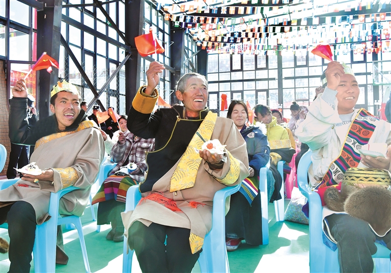 這一幕,發(fā)生在1月6日日喀則市定結(jié)縣郭加鄉(xiāng)政府禮堂里舉行的“感恩奮進(jìn)新居樂業(yè),暖冬六送情滿家園”活動(dòng)現(xiàn)場(chǎng)。