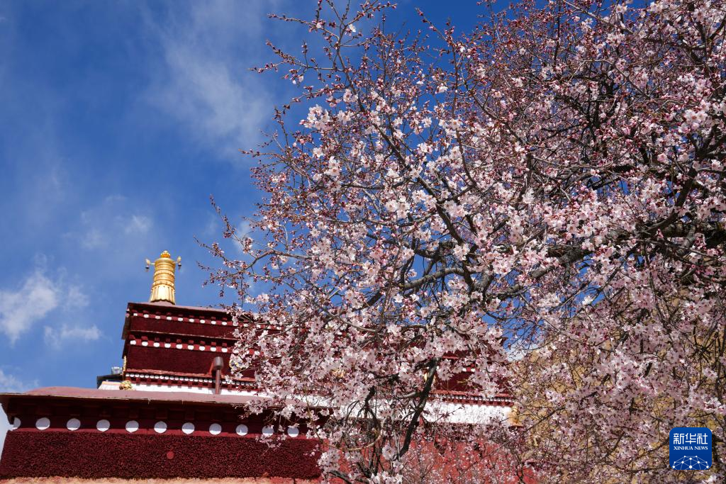 溫暖宜人的四月,拉薩充滿了盎然的春意。坐落在拉薩北郊的古剎帕崩崗桃花絢爛怒放。