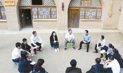 來自甘肅的紅色教育團(tuán)隊(duì)在陜西延川縣文安驛鎮(zhèn)梁家河村上黨課。新華社發(fā)