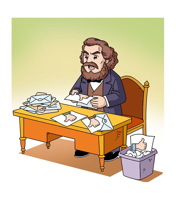 馬克思在一封信里說:“由于厭惡一切個人崇拜,在國際存在時期,我從來不公布那許許多多來自各國的、使我厭煩的歌功頌德的東西;我甚至從來不予答復(fù),偶爾答復(fù),也只是加以斥責(zé)?!?蘇凝/畫