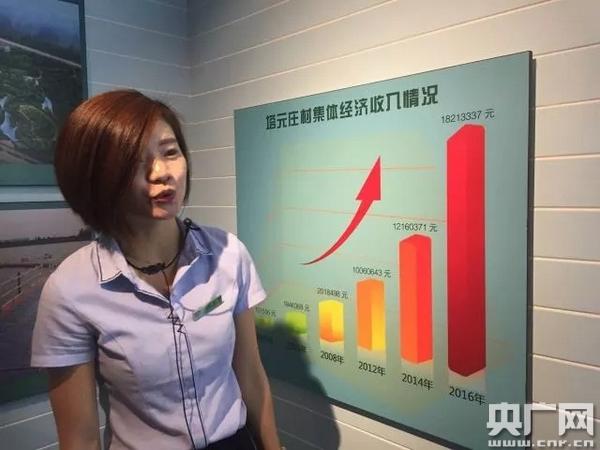 講解員為參觀者講解塔元莊村發(fā)展現(xiàn)狀