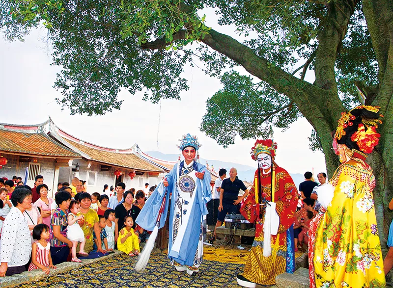 福建省龍海市東園鎮(zhèn)埭美村是閩南紅磚建筑文化的杰出代表,被稱(chēng)為“水上古村落”。近年來(lái),當(dāng)?shù)卮罅?shí)施鄉(xiāng)村振興戰(zhàn)略,對(duì)環(huán)境進(jìn)行整體改造提升,村容村貌煥然一新,鄉(xiāng)村文化發(fā)展繁榮。圖為2018年6月21日,一家薌劇團(tuán)在埭美村榕樹(shù)下表演傳統(tǒng)薌劇《貍貓換太子》,吸引眾多居民及游客。 新華社記者 姜克紅/攝