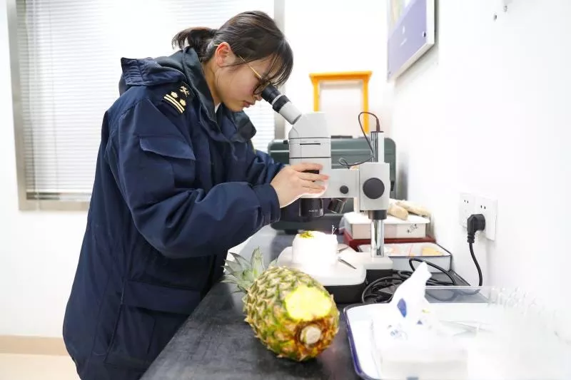 現(xiàn)場,海關關員迅速進行核查貨證,品名、數(shù)量、許可證、提運單號、智利植檢證書,一一核對相符后按照規(guī)定比例抽查。一箱箱貼著“輸往中華人民共和國”中英文標識的櫻桃被送上檢疫操作臺進行感官檢驗,并對可疑果進行剖果,甄別是否有地中海實蠅等檢疫性有害生物為害;揭下包裝箱標簽,在數(shù)據(jù)平臺上查詢該批櫻桃的輸華櫻桃果園、包裝廠,確認是否經(jīng)智利農(nóng)牧局(SAG)注冊,并經(jīng)海關總署認可。最后,要迅速抽取代表性的復合樣品,送實驗室實施安全風險監(jiān)控,對農(nóng)殘和重金屬項目的針對性檢測。天剛蒙蒙亮,所有智利櫻桃全部通過了檢疫,檢驗合格的智利櫻桃被迅速分銷至各大商場、超市以及電商渠道。摁下秒表,從櫻桃從智利起飛到進入中國市場,整個過程只用了不到48個小時。