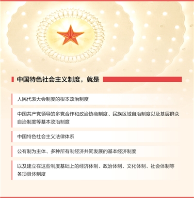 先進(jìn)科學(xué)的制度。制度能夠自我完善、自我革新,得益于制度設(shè)計(jì)的先進(jìn)性、科學(xué)性。中國(guó)制度堅(jiān)持科學(xué)社會(huì)主義基本原則,具有鮮明中國(guó)特色,遵循中國(guó)社會(huì)發(fā)展規(guī)律、制度建設(shè)規(guī)律,是先進(jìn)的、科學(xué)的制度。作為一套相互銜接、相互聯(lián)系的制度體系,它為在堅(jiān)持根本制度、基本制度前提下改革完善各項(xiàng)體制機(jī)制奠定了堅(jiān)實(shí)基礎(chǔ),為發(fā)揮制度優(yōu)勢(shì)提供了有力保障。正如習(xí)近平同志所指出的,“中國(guó)特色社會(huì)主義制度,堅(jiān)持把根本政治制度、基本政治制度同基本經(jīng)濟(jì)制度以及各方面體制機(jī)制等具體制度有機(jī)結(jié)合起來,堅(jiān)持把國(guó)家層面民主制度同基層民主制度有機(jī)結(jié)合起來,堅(jiān)持把黨的領(lǐng)導(dǎo)、人民當(dāng)家作主、依法治國(guó)有機(jī)結(jié)合起來,符合我國(guó)國(guó)情,集中體現(xiàn)了中國(guó)特色社會(huì)主義的特點(diǎn)和優(yōu)勢(shì),是中國(guó)發(fā)展進(jìn)步的根本制度保障。”