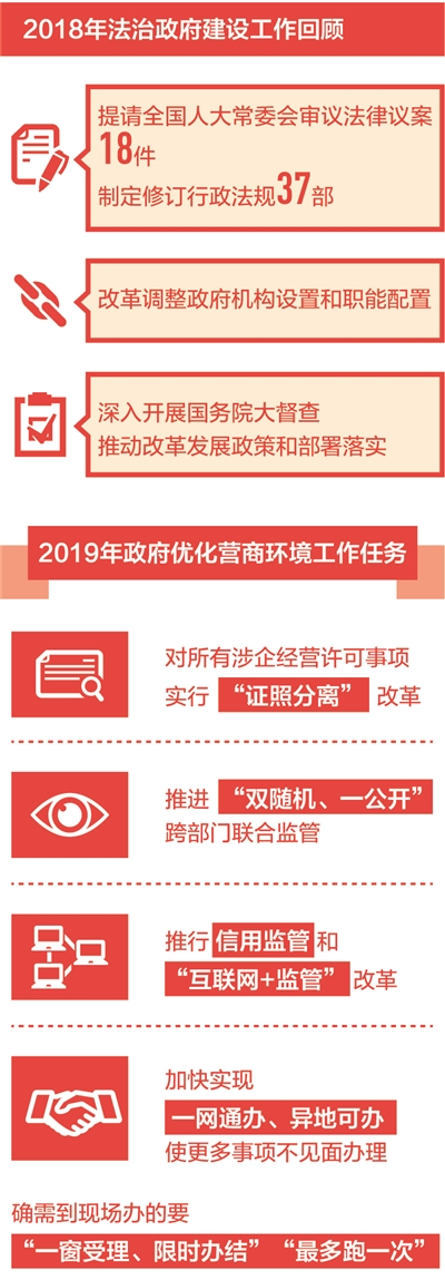 習近平總書記在黨的十九大報告中指出,要建設法治政府,推進依法行政,嚴格規(guī)范公正文明執(zhí)法。政府工作報告中,許多法治關鍵詞折射出法治政府建設的堅實步伐。代表委員們認為,依法行政、加強公正監(jiān)管、創(chuàng)新社會治理,為營造良好經(jīng)濟社會環(huán)境提供有力保障。