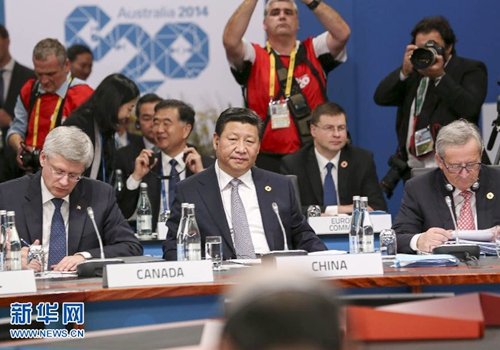 2014年11月15日,國家主席習(xí)近平出席在澳大利亞布里斯班舉行的二十國集團(tuán)領(lǐng)導(dǎo)人第九次峰會,并在第一階段會議上作了題為《推動創(chuàng)新發(fā)展 實(shí)現(xiàn)聯(lián)動增長》的重要發(fā)言。