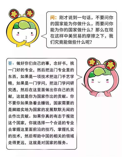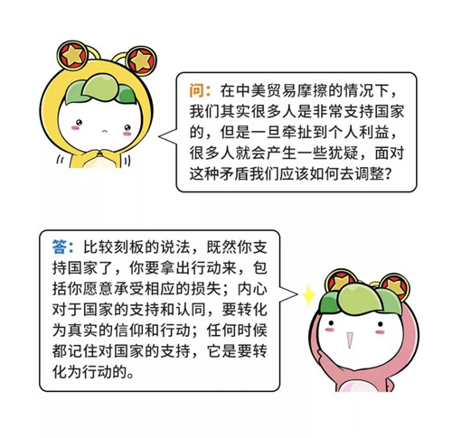 面對(duì)短期的困難和波動(dòng),青年人要清楚“美國(guó)在貿(mào)易戰(zhàn)中提出的要價(jià),不是小打小鬧”,應(yīng)該堅(jiān)定立場(chǎng),“抗?fàn)幍降住?,也要“風(fēng)物長(zhǎng)宜放眼量”,避免局限于眼前的小確幸,被暫時(shí)的挫折和困難所擊倒,要有與國(guó)家民族的發(fā)展同方向的扎實(shí)的行動(dòng),在實(shí)踐中實(shí)現(xiàn)自我價(jià)值。