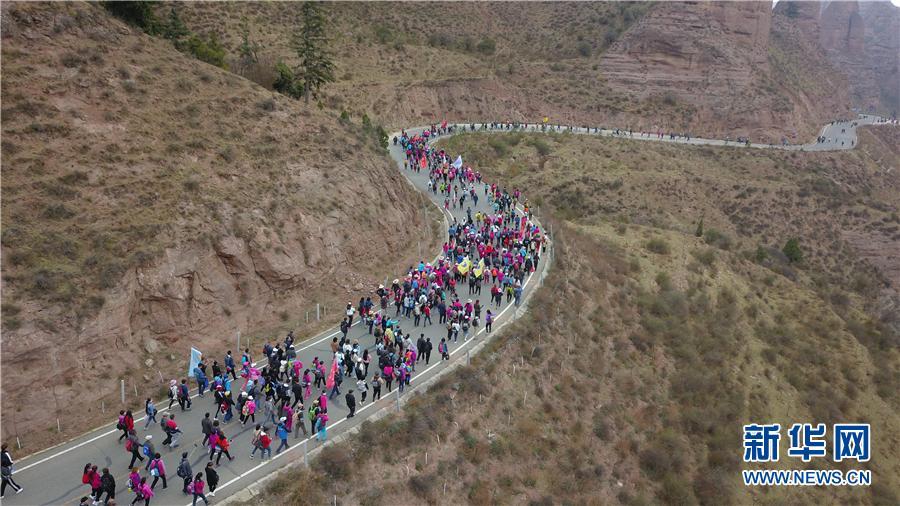 航拍山地徒步比賽現(xiàn)場。新華網(wǎng) 王小龍 攝