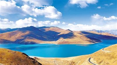 圖為水平如鏡、清澈明麗的羊卓雍錯宛如一塊翠玉落人間,是高原水生態(tài)系統(tǒng)得到良好保護的典型代表。劉楓 次珍 攝