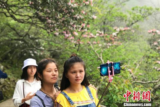 “五一”小長假期間,游客在黃山風(fēng)景區(qū)拍照留念。 侯晏 攝