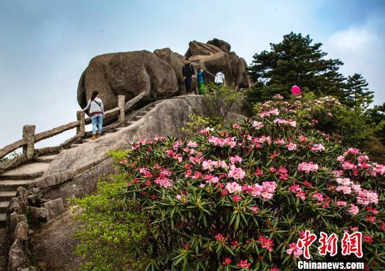 “五一”小長假期間,正值黃山杜鵑盛花期,綻放的杜鵑花與該景區(qū)奇松怪石相映成趣。 葉永清 攝