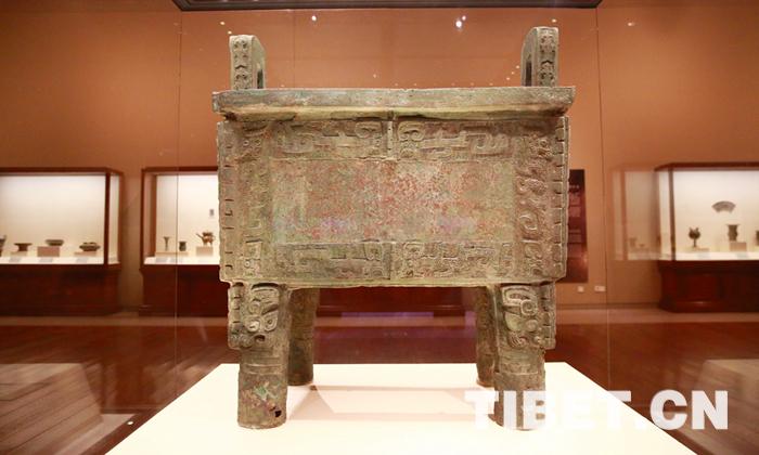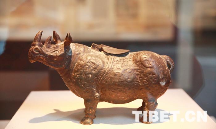 圖為拉薩海關查獲的明代青銅犀牛,陳列于中國海關博物館