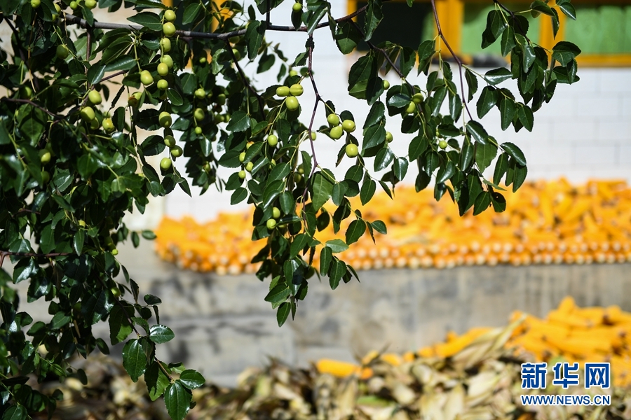 秋色漸濃,在青海省海東市循化撒拉族自治縣上紅光村,樹上的青棗已經(jīng)成熟,水泥地上晾曬著收獲的玉米,滿眼都是豐收的幸福感。