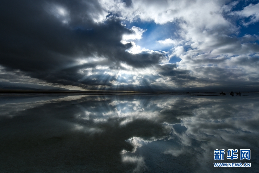 守候,只為一睹茶卡鹽湖的日出。清亮的光芒透過云層的縫隙,灑在湖面上,真如一面鏡子閃著光。