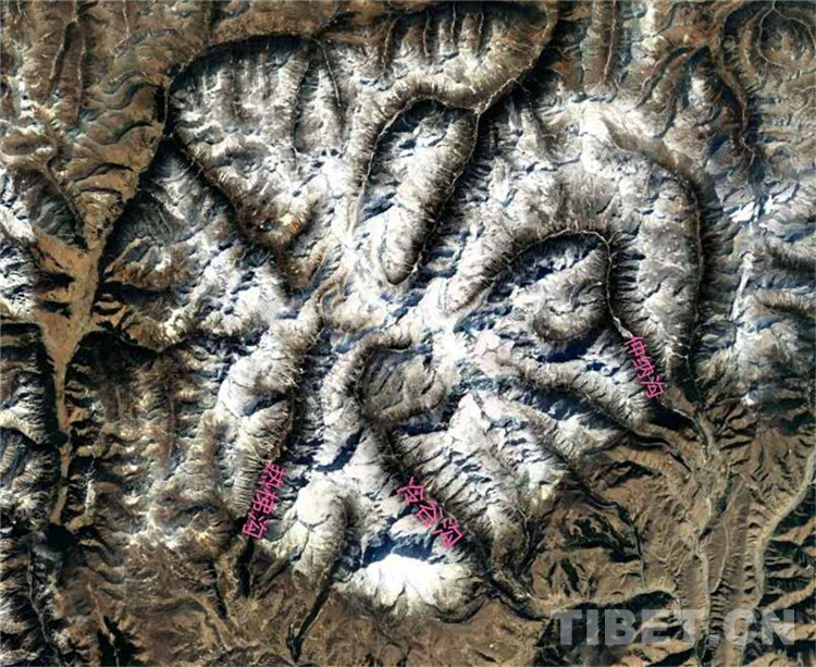 圖為崗波圣地特殊的3條溝谷位置(里塘縣委宣傳部供圖)