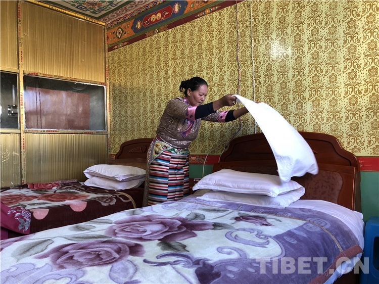圖為金珠德吉在整理客房 攝影:趙二召