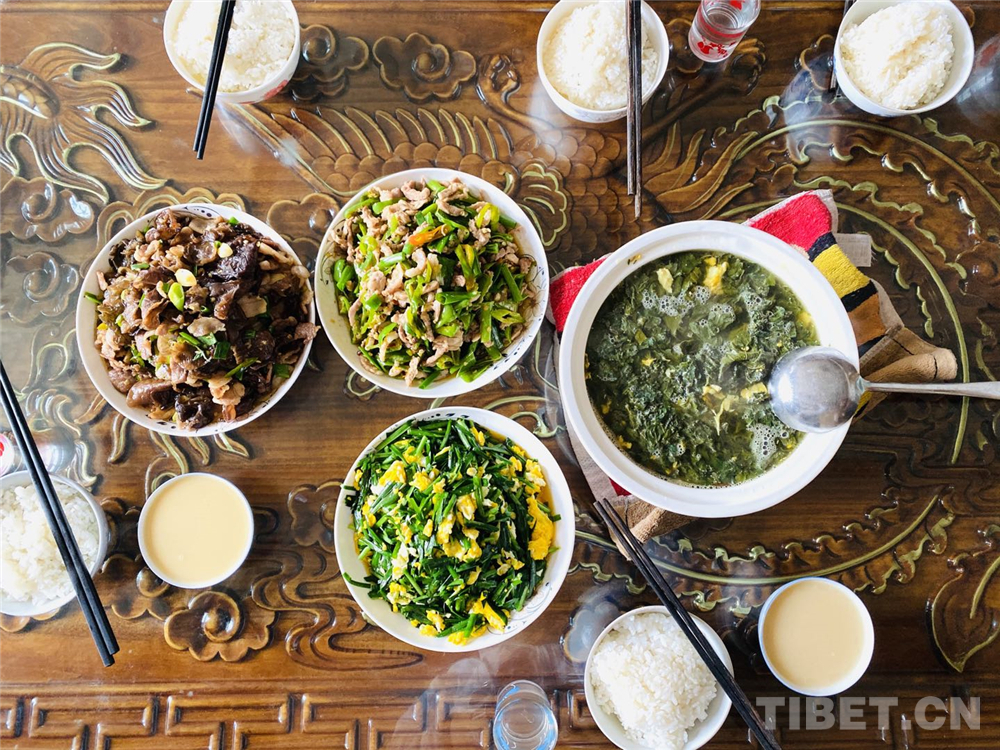 次增做得一手好菜,木耳青椒炒肉、韭菜炒雞蛋,還有蕎麥葉煮蛋湯,家常菜讓人感到非常親切和感動(dòng)。次增對(duì)我們說(shuō):“開(kāi)展生態(tài)宜居示范村建設(shè)后,整個(gè)村變化特別大,以前村里的土路高低不平,現(xiàn)在道路平整,路也寬了,給我們帶來(lái)了很大的幸福,不是光我一家,我們整個(gè)村子家家戶(hù)戶(hù)都覺(jué)得非常滿(mǎn)意。”