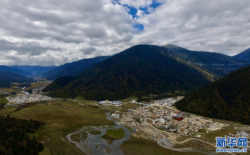 鳥瞰魯朗小鎮(zhèn)(10月15日攝,無人機(jī)照片)。新華網(wǎng) 柑丹鴦琦攝
