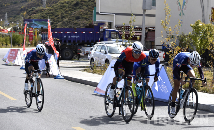 圖為2020第三屆跨喜馬拉雅自行車極限賽公路自行車賽第一段男子組參賽選手抵達終點 攝影:王媛媛