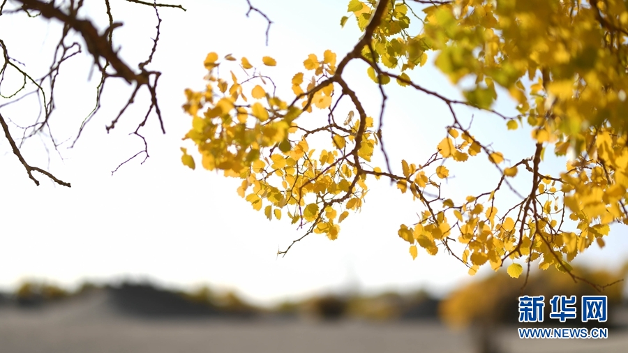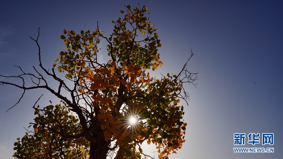 胡楊的葉子在陽(yáng)光的照射下熠熠生輝。新華網(wǎng) 潘彬彬 攝