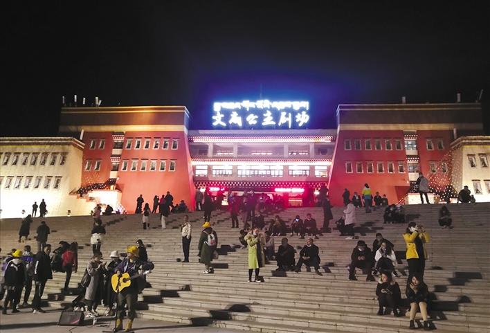 如今,拉薩除了布達(dá)拉宮、大昭寺……文成公主劇場(chǎng)及所在地慈覺(jué)林已然成為拉薩必游的又一新的打卡點(diǎn)。傍晚的慈覺(jué)林也因?yàn)槲某晒鞫鵁狒[非凡,雖然國(guó)慶黃金周已過(guò),但是文成公主劇場(chǎng)前仍人潮涌動(dòng),游客、市民在這里欣賞美景、駐足,流浪歌手在這里熱情獻(xiàn)唱,小販的吆喝聲不斷,路邊的店鋪燈火通明,好不熱鬧。(記者 黃志武 見(jiàn)習(xí)記者 格桑央珍 桑吉 楊曦婷 攝)