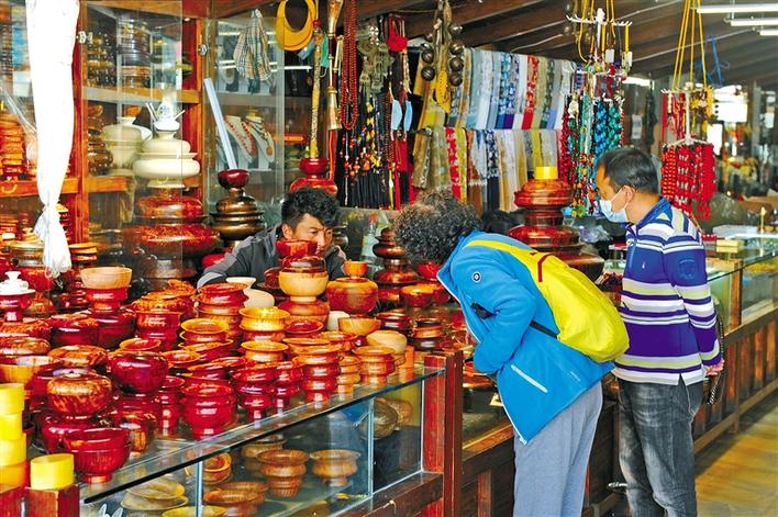 圖為游客在八廓商城購(gòu)買商品。記者 次仁平措 攝