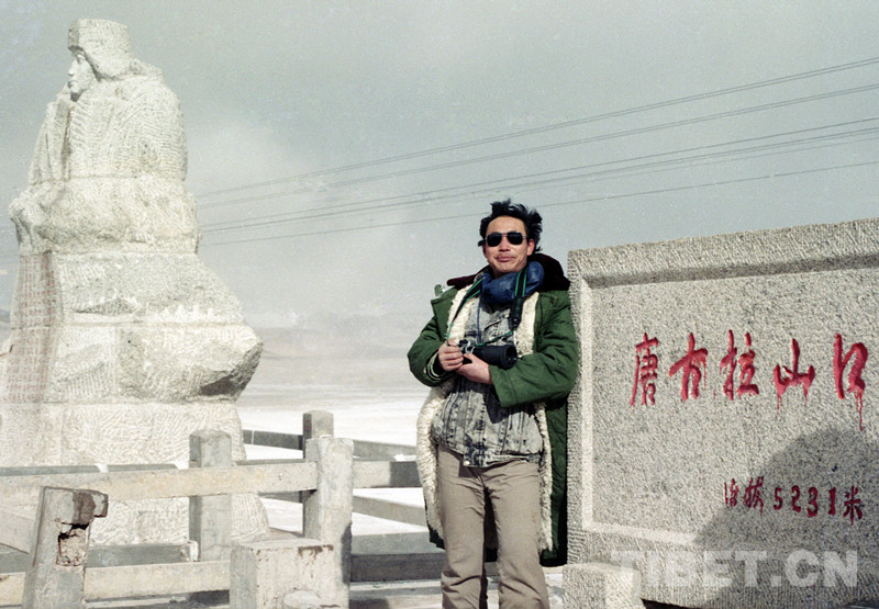 這是唐召明在青藏公路的唐古拉山道班采訪時(shí),在山口紀(jì)念碑前拍照留念(唐召明提供,1990年冬攝)