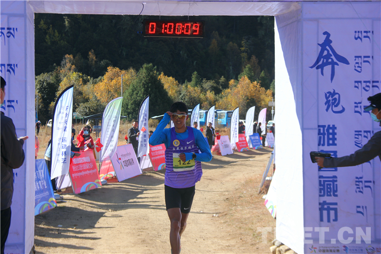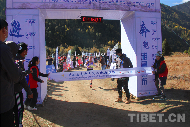 在雪山的映襯下,參賽選手們身穿各色服裝,伴隨著周邊村民的加油助威,一路抵達(dá)終點(diǎn)。最終,來自西藏自治區(qū)山南市的扎巴以59分02秒的成績獲得男子組第一名,邊片以1小時(shí)16分12秒的成績奪得女子組第一名。